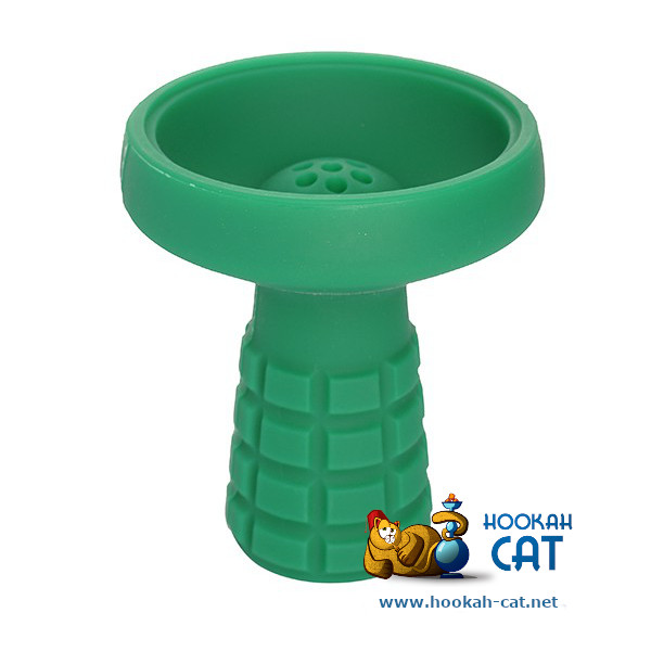 Чаша для кальяна силиконовая Hype Grenade Green (Хайп Граната Зеленая) - силиконовая черная чаша с характерным узором осколочной рубашки гранаты на ножке. Хороший и качественный силикон - тверже чем другие китайские чаши, и меньше плавится.