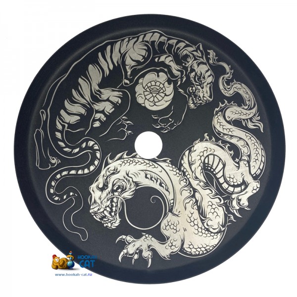 Блюдце для кальяна Alpha Hookah №5 Тигр и Дракон - дизайнерское блюдце для кальянов Alpha Hookah Kappa / Model S / Model X с гравировкой в виде тигра и дракона.