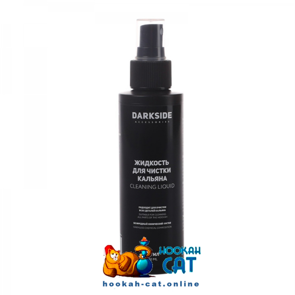 Жидкость для чистки кальяна DarkSide (Дарк Сайд) 150мл - новое средство для чистки кальянов от всем известного и популярного производителя. Подходит для очистки всех деталей, имеет безвредный состав и что самое удобное идет в комплекте с пульверизатором для более удобной работы.