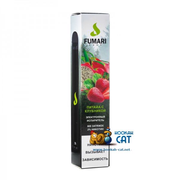 Одноразовая электронная сигарета Fumari (Фумари) Питахайя Клубника 800 затяжек - девайс, изготовленный по типу ингалятора, со встроенным аккумулятором, но при этом перезарядить или перезаправить его нельзя. Рассчитан на 800 затяжек и имеет при этом вкус экзотического фрукта дракона и спелой сочной клубники.
