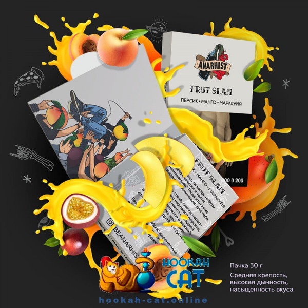 Табак для кальяна Anarhist Frut Slam (Анархист Персик Манго Маракуйя) 30г Акцизный - медовый персик в сочетании с тропическим манго и сладкой маракуей в нежнейшем йогурте.