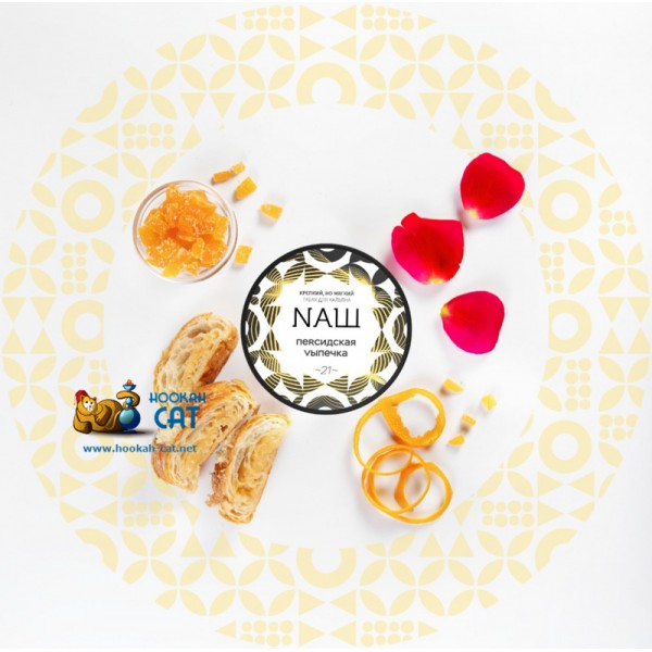 Табак для кальяна NАШ ПЕRСИДСКАЯ VЫПЕЧКА (НАШ Персидская Выпечка) 40г Акцизный - любишь восточные сладости? Тогда скорее бери этот вкус и забивай себе в чашечку! Сладкая основа из слоеного теста, с приятными нежными нотками лепестков розы и невероятная сахарная цедра! О, как же это вкусно в соло!
