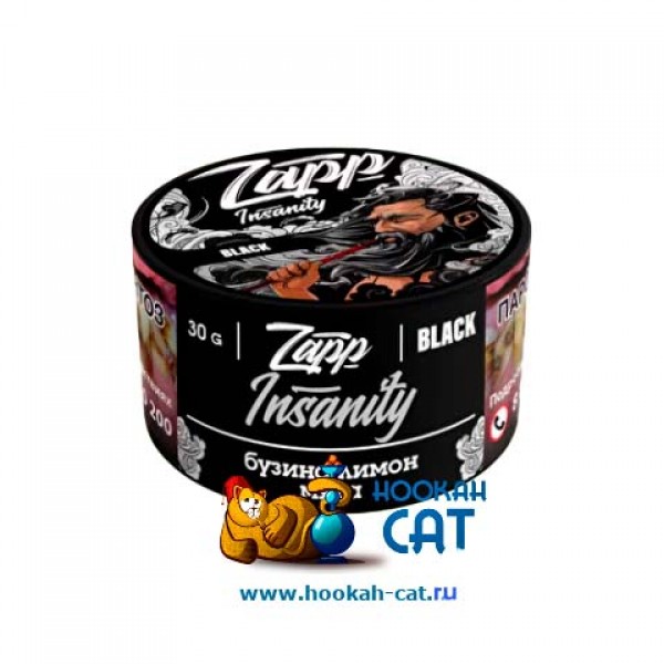 Табак для кальяна Zapp Black Insanity (Запп Инстанити) 30г Акцизный - готовый необычный микс сочетает в себе нотки цитруса, ванили и меда с ароматом цветов бузины, а на послевкусии сочный кислый лимон с мятой.