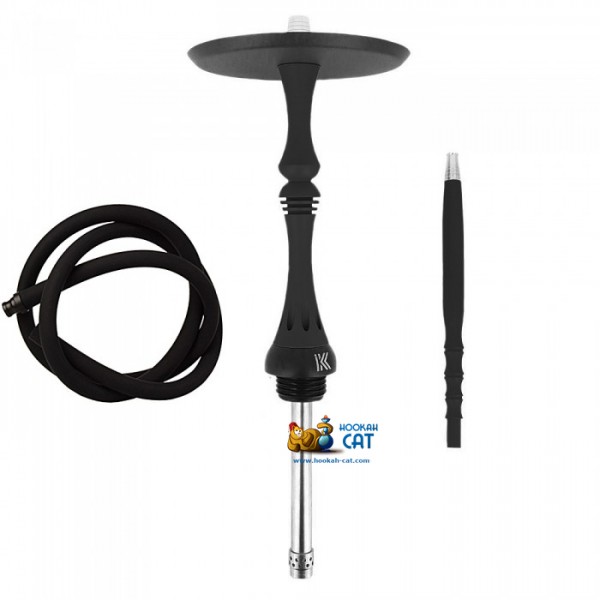 Кальян среднего размера (высота с колбой примерно 55см), но при этом шахта сделана из нержавеющей стали, а корпус кальяна из анодированного алюминия и немецкого полиацеталя. Мундштук абсолютно такой же как у всем известного Model X. Все очень качественно покрашено, включая блюдце, на котором сделана крутая гравировка. Сам кальян покрашен в очень красивый черный матовый цвет.