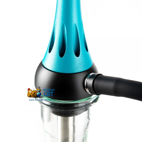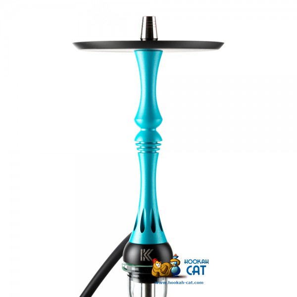 Кальян среднего размера (высота с колбой примерно 55см), но при этом шахта сделана из нержавеющей стали, а корпус кальяна из анодированного алюминия и немецкого полиацеталя. Мундштук абсолютно такой же как у всем известного Model X. Все очень качественно покрашено, включая блюдце, на котором сделана крутая гравировка. Сам кальян покрашен в очень красивый синий цвет флорида.