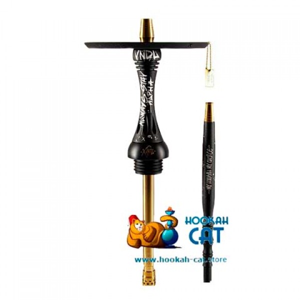 Кальян Alpha Hookah Model X VNDL Jet Black (Альфа Хука Модель Х ВНДЛ Черный) - новая красивая версия кальяна модель х черного цвета в сочетании с благородным золотым смотрится фантастически красиво! Накладка на шахту и мундштук идет в черном цвете, а сама шахта золотого цвета. Так же на блюдце идет стильный брелок, а на шахте и мундштуке сделана крутая, качественная гравировки - это придает кальяну немного дерзости.