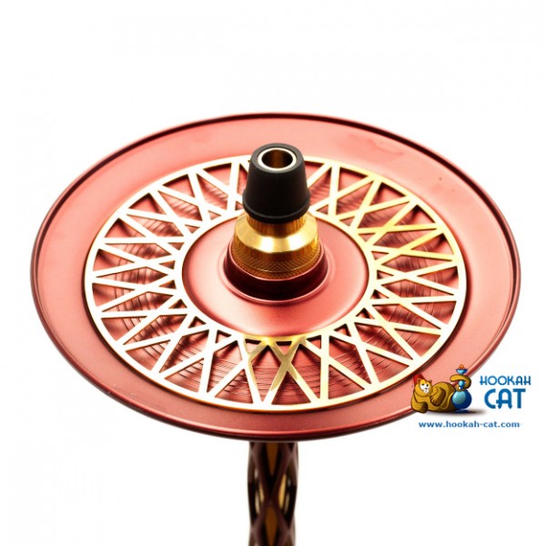 Помимо его особенных отличий, так же стоит отметить, что кальян довольно высокий (высота с колбой примерно 60см), а погружная шахта имеет так же золотой окрас. Накладка, как и основание покрыты анодированным алюминием красного цвета. Мундштук стилизован под шахту и довольно удобно лежит в руке. На блюдце, кстати, имеется дополнительная сеточка, которая способствует не такому быстрому потуханию угля, если скинуть на нее лишний кубик.