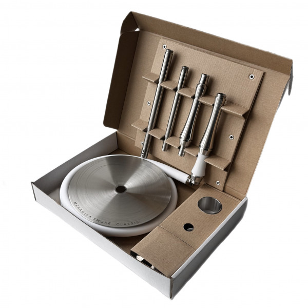 Кальян Mexanika Smoke STM Classic Snow Mini (Механика Смоук СТМ Классик Сноу Мини) - исполнение модели STM Classic с белой накладкой из полиацеталя. Использование качественных материалов - нержавейки AISI 304 - делает этот кальян крайне долговечным и надежным. Классика в чистом виде!