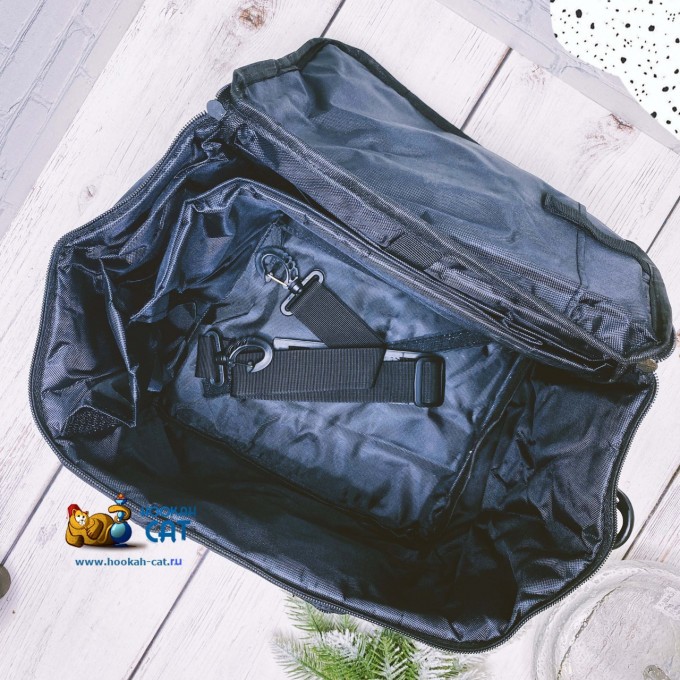 Что самое важное и основное кальян идёт ПОЛНЫМ КОМПЛЕКТОМ - шахта, колба, шланг, мундштук, чашка, щипцы и даже сумка! Стоит отметить, что сумка реально качественная и плотная, в ней много отделений и перевозить в ней кальян будет одно удовольствие!