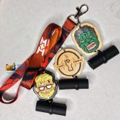 -значки из дерева с изображением геров комиксов, мультсериалов, фильмов или с прикольными фразами;