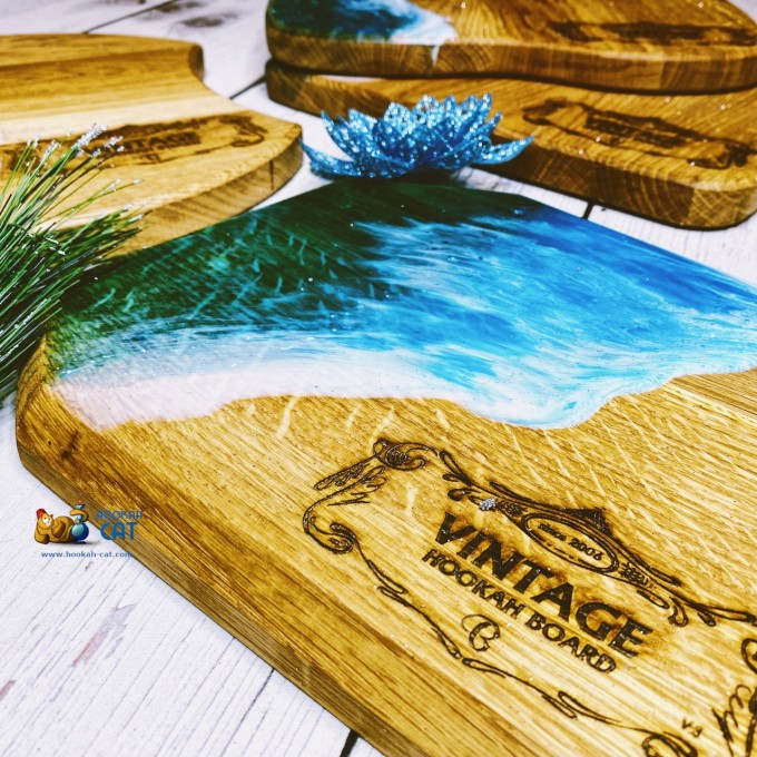 Они выполнены в винтажном стиле, что добавляет им некой притягательности ;) Но на этом красота не заканчивается, ведь частично доски покрыты эпоксидной смолой, которая похожа на море с волнами