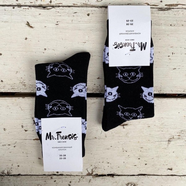 Носки женские Коты черные - у Кальянного Кота можно еще запастись носочками! Они выполнены из комбинированного хлопка, с мягкой резинкой и забавным рисунком - выбирай тот, что тебе нравиться - хвастайся друзьям и главное - держи свои лапы в тепле!