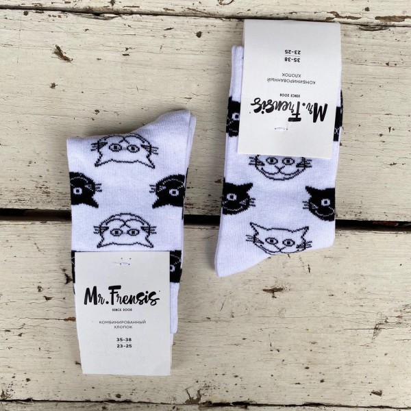 Носки женские Коты белые - у Кальянного Кота можно еще запастись носочками! Они выполнены из комбинированного хлопка, с мягкой резинкой и забавным рисунком - выбирай тот, что тебе нравиться - хвастайся друзьям и главное - держи свои лапы в тепле!